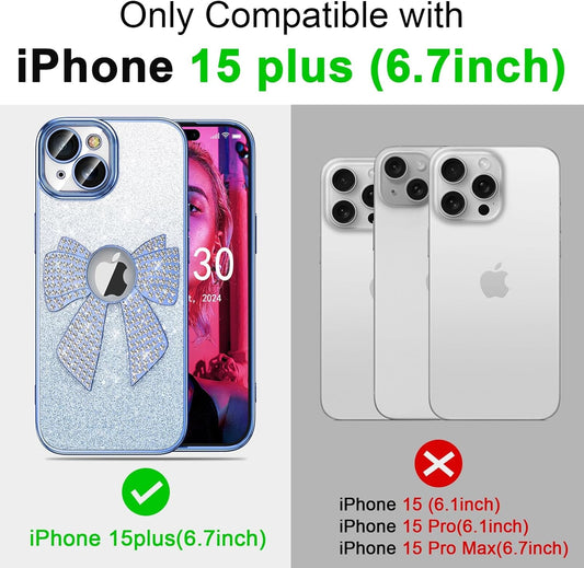 QIVSTAR Designed for Iphone 15 plus Case, Full Camera Lens Protector Slim Gradient Sparkle Luxury Plating Glitter Shockproof Protective Cover Women Girls Case for Iphone 15 plus 6.7 Inch, Blue KDL