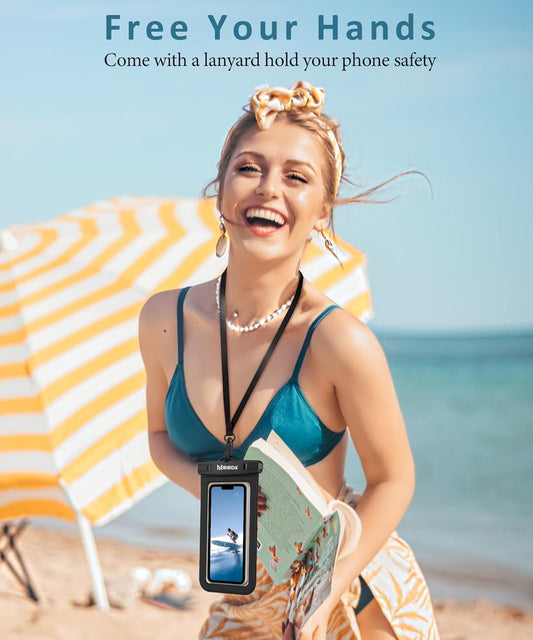 MIODIK Bundle - for Waterproof Phone Pouch + Iphone 15 plus Case, with Detachable Lanyard + 9H Tempered Glass Screen Protector + Camera Lens Protector - Black + Purple