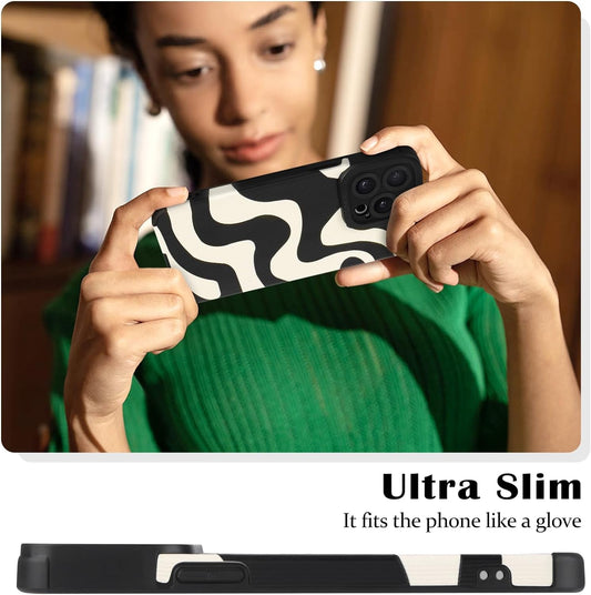 Newseego for Iphone 15 Pro Max Case, Cute Zebra Wave Pattern Design Case for Women Girls Soft TPU Bumper Anti-Scratch Shockproof Full Camera Protective Case Cover for Iphone 15 Pro Max-Black White
