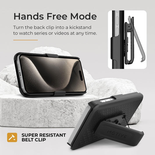 MOTIVE for Iphone 15 Pro Max Case with Belt Clip, Shell Holster Combo for Apple Iphone 15 Pro Max Holster, Slim Rugged Case, Drop Shockproof Protective Cover & Kickstand, 6.7 Inch | Black