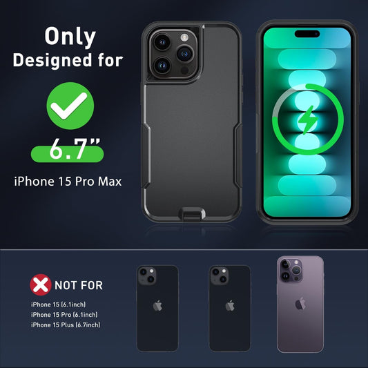 Pdxox Heavy Duty Case for Iphone 15 Pro Max,3-Layer Military Protection Drop Protective Shockproof Full Body Protection Wireless Charging Tough Case for Iphone 15 Pro Max (Black)