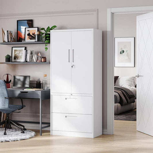 PEUKC 2-Drawer Metal File Cabinet, Lateral Vertical Filing Cabinets for Home Office, Locking File Cabinet with Storage Shelves, Legal/Letter/A4 Size Office File Cabinet, (White, Assemble Required)