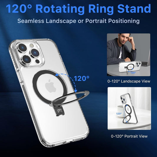 MYBAT PRO Lure Series Iphone 15 Pro Max Case with Magnetic Ring Stand[Compatible with Magsafe],Slim Thin Shockproof Transparent Bumper Cover,Non-Yellowing Iphone Case for Iphone 15 Pro Max