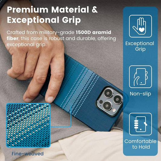 Pitaka Case for Iphone 15 Pro Max, Slim & Light Iphone 15 Pro Max Case Magsafe 6.7-Inch with a Case-Less Touch Feeling, 1500D Aramid Fiber Made [Magez Case 5 - Moonrise]