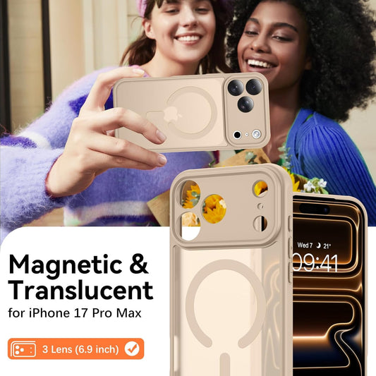 BENTOBEN Magnetic for Iphone 17 Pro Max Case, Upgraded [Full Camera Protection] [Compatible with Magsafe] Translucent Matte Phone Case Iphone 17 Pro Max Shockproof Protective Cases, Light Brown