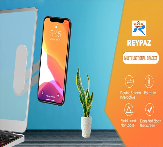 REYPAZ Adjustable Laptop Side Mount Clip, Phone Holder for Laptop - Laptop Stand Computer Monitor Expansion Bracket Compatible with All Cell Phones