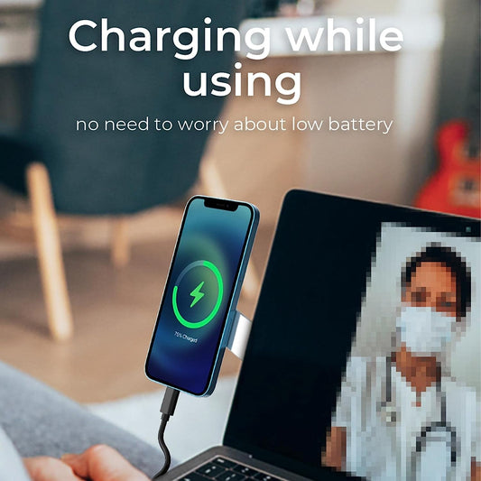 Rolling Square Edge Full Kit with Cell Phone Holder, 15W Magnetic Wireless Charger, and 280-Lumen Laptop Monitor Light for Zoom Meetings, Carrara White
