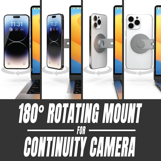 ICONIT Continuity Flip Iphone Laptop Mount - Slim Magnetic Phone Holder Swivels 180° for Laptops and Monitors - Adjustable Magnetic Arm - Compatible with Iphone 14/13/12 plus Pro Max (Gray)