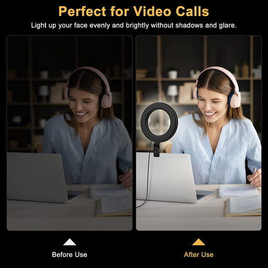 6.5" Ring Light for Computer Video Conference Lighting, Zoom Meetings. 29 Modes Dimmable Ringlight with Desk Tripod Stand and Clip. Laptop Webcam Light. Portable Selfie Light with RGB LED