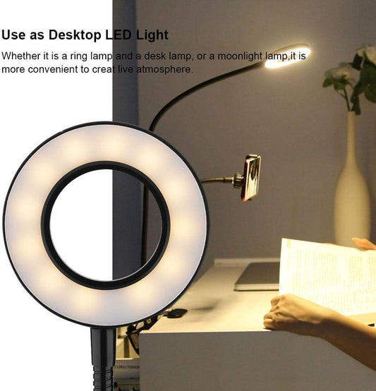 Selfie Ring Light with Tripod Stand, Flexible Cell Phone Holder Bracket Desk Lamp LED Light for Live Broadcast/Make Up, Suitable for Youtube Tiktok/Photography Compatible Mobile Phones(Upgraded)