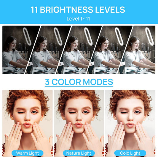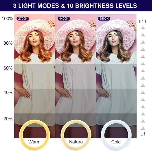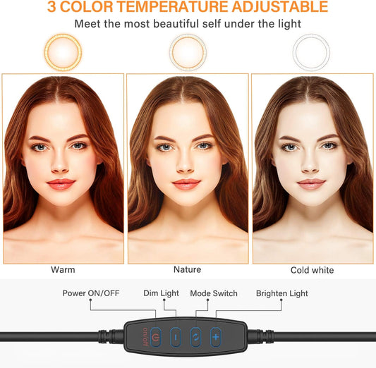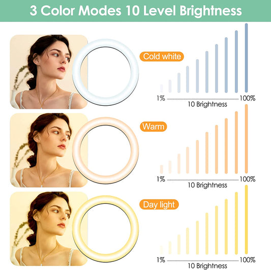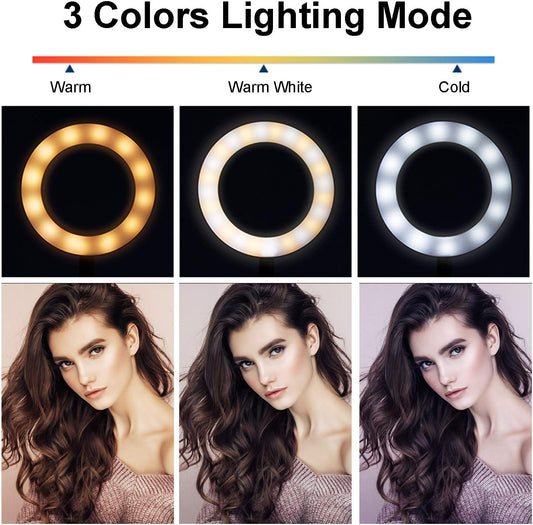 LED Ring Light, Selfie Ring Light with Tripod Stand & Phone Holder, Dimmable Desk Makeup Ring Light for Live Streaming, Photography with 3 Light Modes