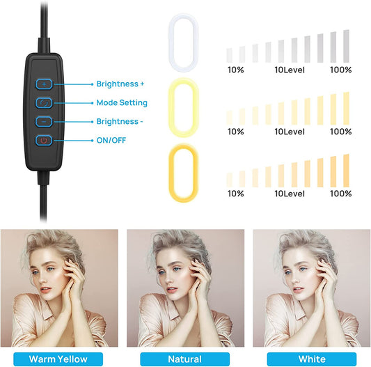 8'' Ring Light with Tripod Stand & Phone Holder for Selfie, Makeup,Live Streaming & Youtube Video,3 Light Modes and 10 Brightness Level,Dimmable Desk Makeup Ring Light