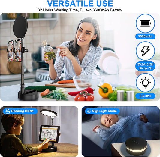 Ring Light with Stand and Phone Holder, Cordless Foldable Ring Light with 3600Mah Battery, Portable Travel Ring Light for Video Conference/Vlogging/Live Stream/Night Light