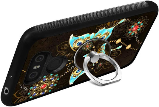 Designed for LG G6 Case,Silicone Slim Shockproof Phone Case with Metal Finger Ring Clasp Suitable for Men and Women, Butterfly