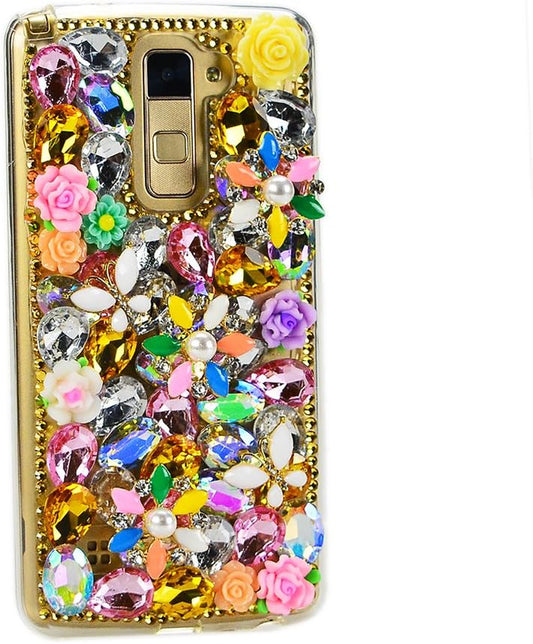 STENES Bling Case Compatible with LG G6 / LG G6 plus - Stylish - 3D Handmade [Sparkle Series] Pretty Butterfly Bowknot Rose Flowers Design Cover with Screen Protector [2 Pack] - Colorful