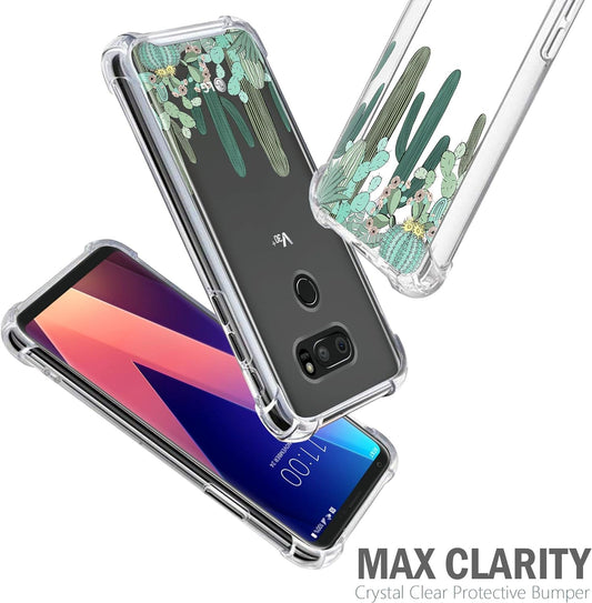 Casesondeck Crystal Case Compatible with [LG V30S Thinq and LG V30] Thin Slim Anti-Slip Grip Case with Bumper Edges Hard Back (Cactus Garden)