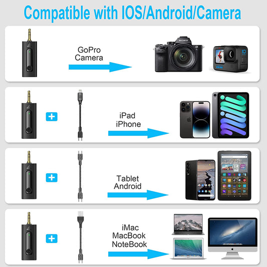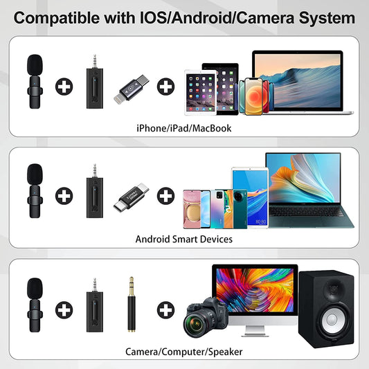 Wireless Lavalier Microphone for Iphone/Android Phone/Camera/Computer/Laptop, Recording Omnidirectional Condenser Mic with Ultra Low Delay, Lapel Noise Canceling Mic for Youtube Interview Tiktok Vlog