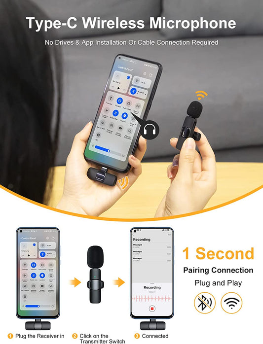 ASILEX Wireless Lavalier Microphone for Type-C Phone, 2 PCS Mini Microphone, Professional Wireless Lapel Microphone, Android USB C Microphone for Video Recording