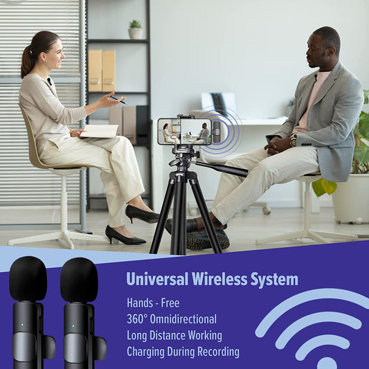 Javik 2 Pack Wireless Lavalier Microphone for Iphone Ipad Noise Reduction Clip on Microphone Auto Sync Mini Lapel Microphone for Video Recording, Youtube, Interview, Vlog, Tiktok, Live
