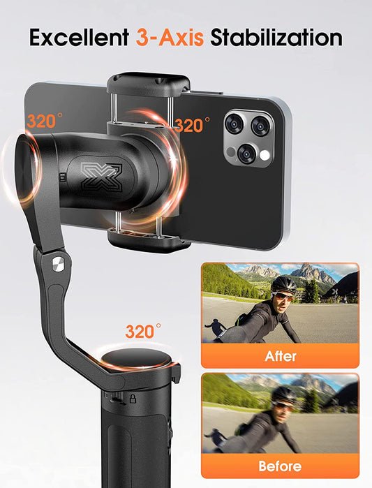 Gimbal Stabilizer for Smartphone W/Led Light Face Tracking Inception Timelapse Handheld Foldable 3-Axis Gimble for Iphone 14 13 12 11 Pro/Max Android Galaxy S21 Youtube Tiktok Vlog AOCHUAN Smart X