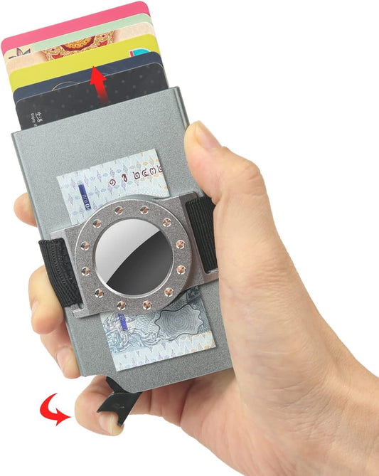 Le Vasty Airtag Wallet for Women, Minimalist Slim Wallet, RFID Blocking Front Pocket Credit Card Holder, Aluminum Card Wallet with Cash Strap (Gray)