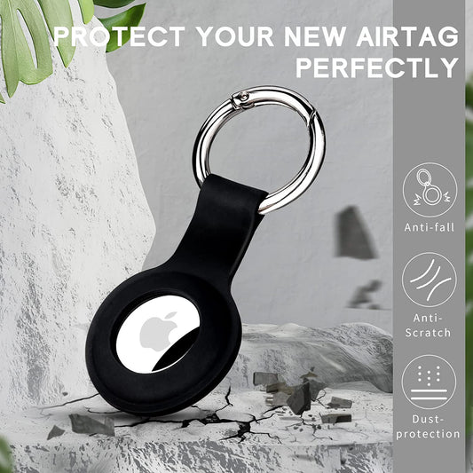 Holder Case for Airtags Silicone Sleeve for Airtags Durable Anti-Scratch Protective Skin Cover with Anti-Losing Keychain Ring Accessory Compatible with Apple Airtags Tracker Black 2Pack