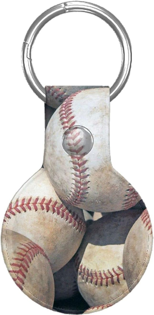 Baseball Protective Airtag Holder Cover, Keychain Anti-Lost Leather Airtags Case Compatible with Dog Collar Key Ring Airtag Accessories