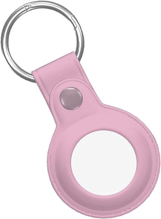 Cute Leather Airtag Case Keychain Pink Air-Tag Key Ring Holder for Dog Collar Kids