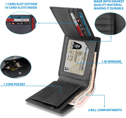 Doeboe Airtag Wallet Trifold with Coin Pocket, Air Tag Wallet RFID Blocking Credit Card Wallet for Men Genuine Leather, Compatible with Apple Airtag GPS Tracker, Airtags Accessories (Black)