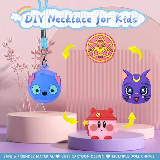 2-Pack Kids Airtag Necklace Cute, Adjustable Air Tag Necklace for Kids Air Tag Holder Silicone Cartoon Air Tag Accessories for Kids Toddler Adults (Yellow + Pink)