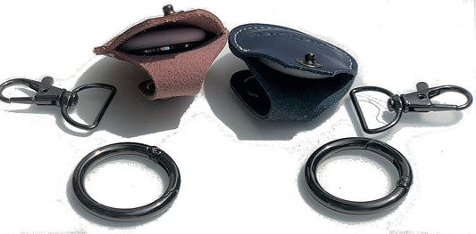 Airtag Holder Air Tag Holder Anti-Lost Items Apple Airtags Pet Collar Protection - NO More Lost VALUABLES - Genuine Leather 2 Pack (Multi Colors: Dark Blue & Saddle Brown) Trendsee (TS LG BE BR)