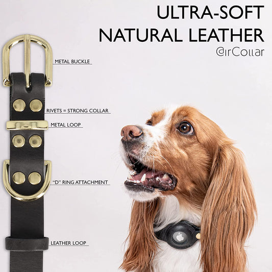 Aircollar Apple Airtag Natural Leather Pet Collar, Compatible with Apple Airtag 2021, Durable Leather (L: 0.9” Wide for 18.7” - 25.6” Neck, Honey Brown)