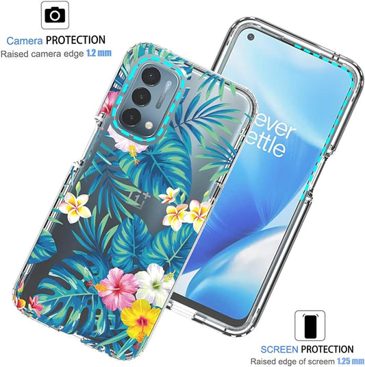 Vokuha Case for Oneplus Nord N200 5G, Oneplus N200 5G Case for Girls, Cute Floral Crystal Clear TPU Bumper Shockproof Protective Armor Cover for Oneplus Nord N200 5G (Flowers & Leaves)