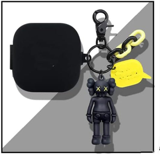 For Beats Fit Pro 2021 and Airtags 2-In-1 Case,Funny 3D Cartoon Shockproof Soft Silicone Case Cover with Carabiner for Kids Girls Boys Women (Black)