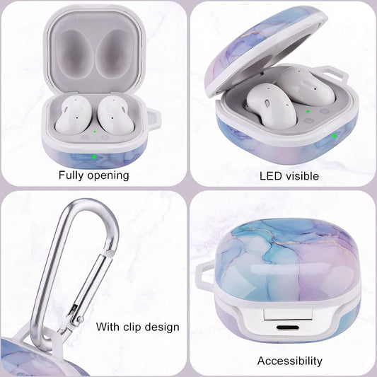 OLEBAND Buds 2 Pro/Buds Pro Case with Cute Pattern and Keychain,Hard Earbuds Cover for Women and Girls,Samsung Galaxy Buds Live Charging Case Accessory,Watercolor Marble