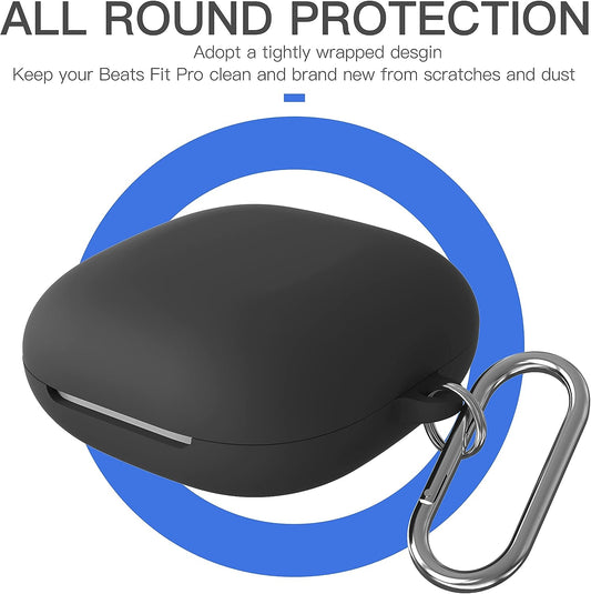 Geiomoo Silicone Case Compatible with Beats Fit Pro, Scratch Resistant Carrying Cover with Carabiner (Black)