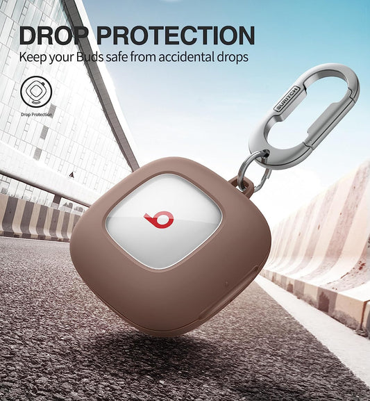 SURITCH Beats Fit Pro Case Cover Protector, Shock-Absorbing Protective TPU Shell for Beats Fit Pro Charging Case 2021 Earbuds Secure Locking System with Anti-Lost Keychain, Dune
