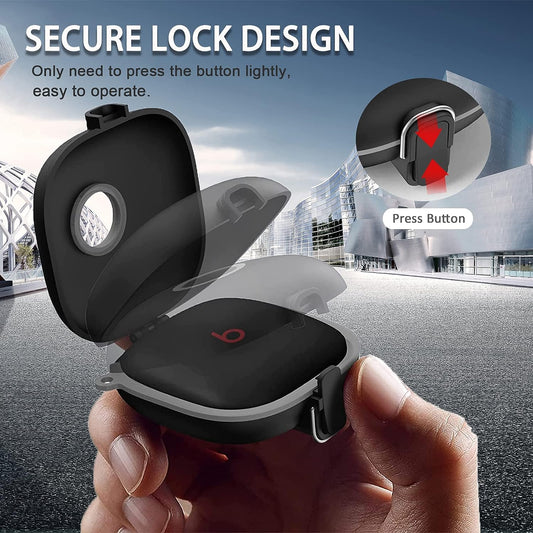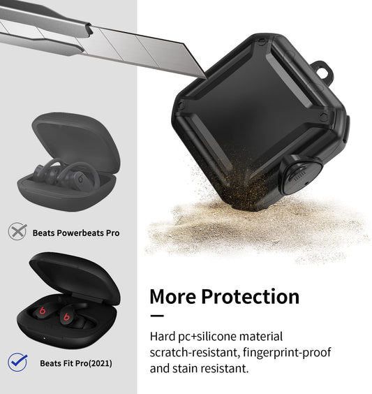 [With Lock] Case Cover for Beats Fit Pro Case 2021, Shock-Absorbing Protective PC+TPU Security Lock Cases Compatible with Beats Fit Pro with Keychain/Lanyard/Cleaning Brush (Black)