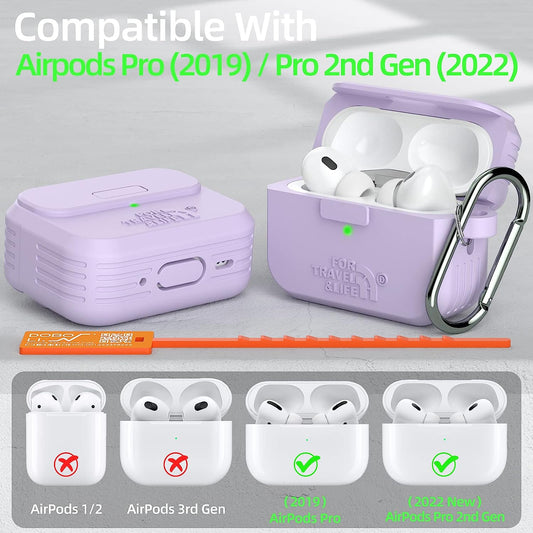 Airpods Pro 2Nd/1St Generation Case Cover,Secure Lock Full Protective Silicone Skin Accessories for Women Men with Apple Airpods Pro 2022/2019 Charging Case,Design by Doboli,Lavender