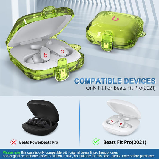 [With Safety Lock] for Beats Fit Pro Case Cover, Shock-Absorbing Protective Hard PC Shell Clear Case for Beats Fit Pro 2021, Secure Lock Case Beats Fit Pro Accessories Keychain/Lanyard (Clear Yellow)