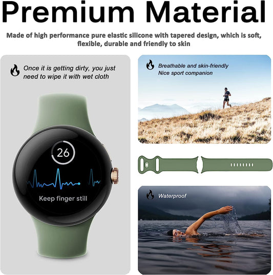 Miimall Compatible for Google Pixel Watch Band Silicone, Flexible Quick Fit Strap for Women Men, Breathable Lightweight Replacement Band Strap for Google Pixel Watch(Deep Green)