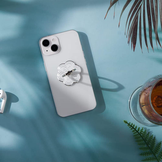 Flower Cell Phone Ring Holder, Zinc Alloy Metal Phone Back Ring Grip for Finger (White)