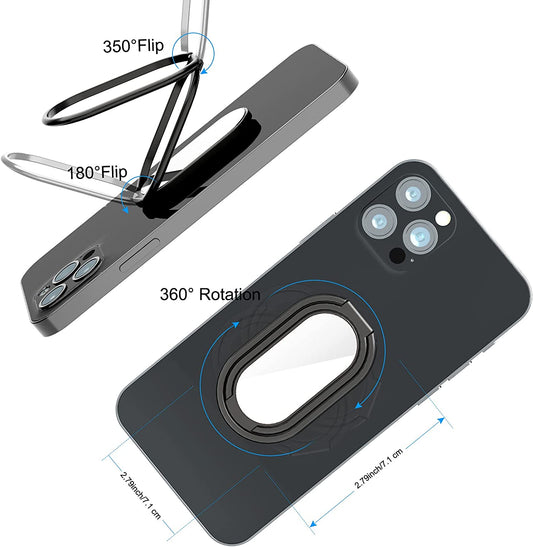 Phone Ring Holder Finger Kickstand, 360° Rotation Cell Phone Ring Holder Stand Metal Phone Back Grip for Magnetic Car Mount Foldable Cell Phone Stand Compatible with Most Smartphones