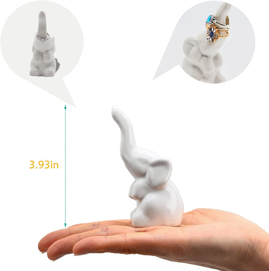BARBIZON WAGON Elephant Ring Holder for Jewelry, Engagement Ring Display Holder Stand Trinket Trays, Cute White Elephant Lucky Decoration (2 Pack).