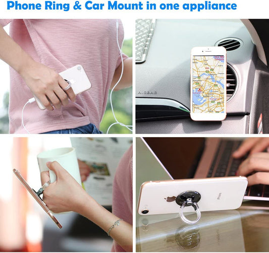 Phone Ring Holder Stand, 3 in 1 Universal Phone Car Vent Mount and Finger Grip Phone Holder Compatible with All Iphone, Samsung Galaxy & Smartphones