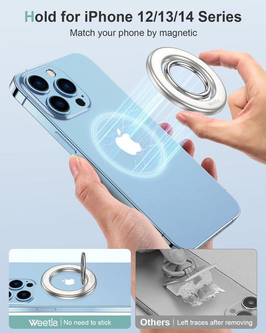 Weetla Magnetic Phone Ring for Magsafe, Magnetic Phone Grip, Phone Ring Holder, Aluminum Alloy Phone Ring with Adjustable Kickstand for Iphone 14/13/12(Plus,Mini,Pro, Pro Max), Smartphone Accessories
