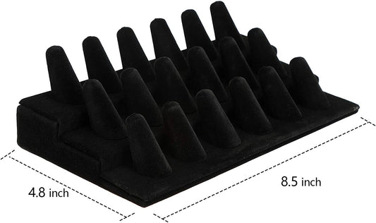Foraineam 2 Pack Finger Ring Display Black Velvet 18 Slot Jewelry Counter Showcase Storage Organizer Holder