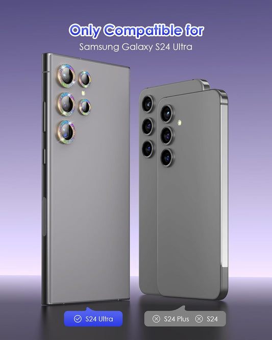 For Galaxy S24 Ultra Camera Lens Protector Glitter Bling Individual Aluminium Alloy Ring 9H Tempered Glass Decorative Accessories Camera Cover for Samsung Galaxy S24 Ultra Glitter Colorful