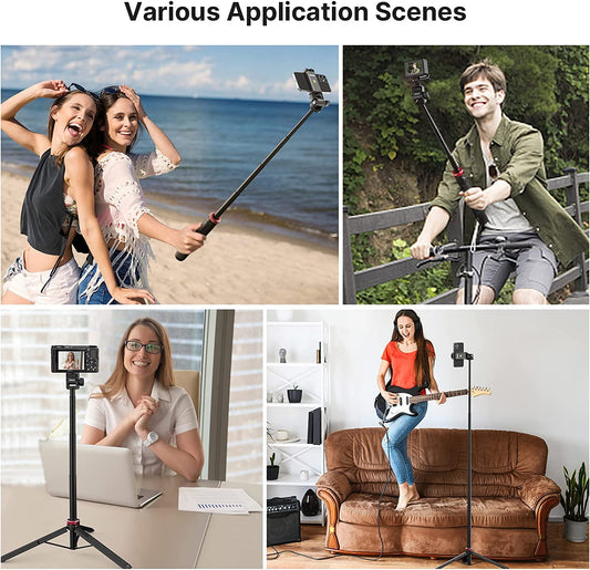 Andoer 54-Inch Selfie Stick Extendable Tripod Stand Aluminum Alloy with Detachable Desktop Tripod Phone Holder Sports Camera Mount Adapter Remote Shutter Compatible with Iphone and Android Phones