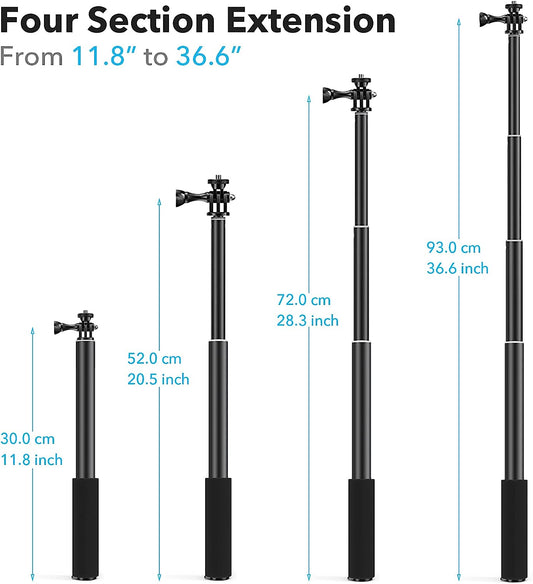 UNIXYZ 36“ Selfie Stick with Tripod Phone Clip Aluminum Waterproof Extension Pole for Gopro Mini Max Hero 11 10 9 8 7 6 5 Insta360 X 2 X3 DJI Action 2 3 Accessories